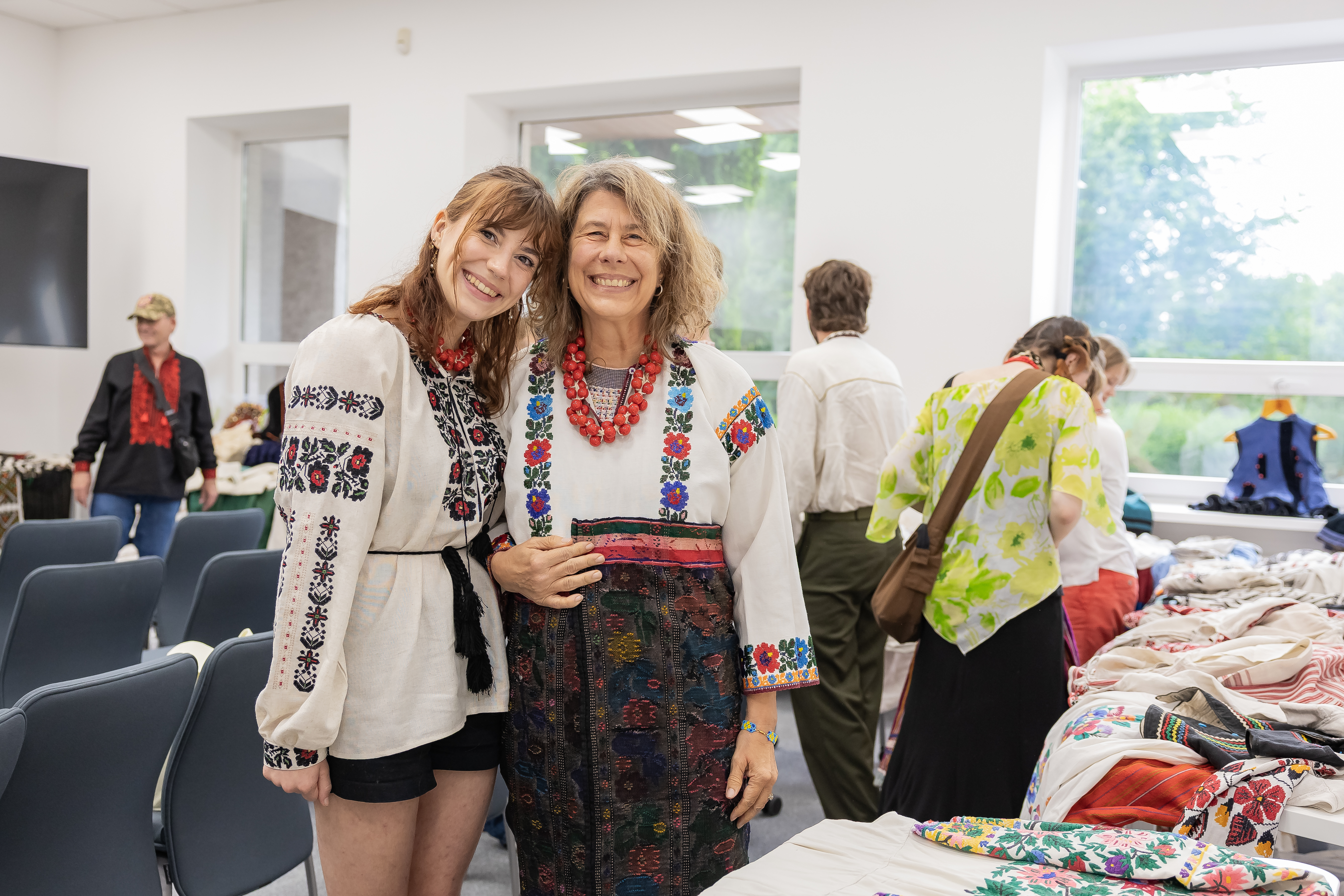 First, we got a lecture about vyshyvankas. Traditionally, vyshyvankas are very regional items β almost like a uniform, certain patterns and colours of embroidery identified from what village people came. Vyshyvanka could be from different materials β cheaper and a bit stiff, or more expensive and soft β depending on the wealth of the owner.