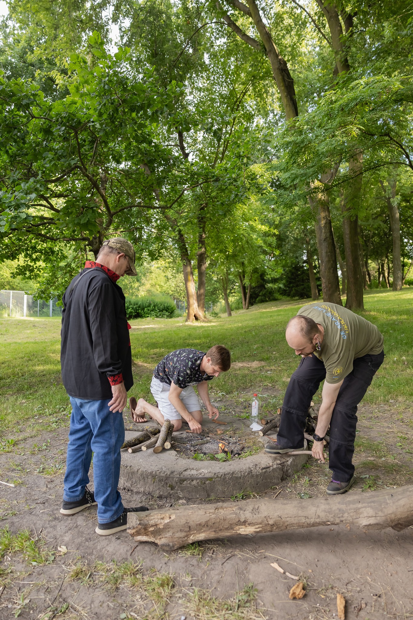 While the ladies were constructing headgear, the men, of course, handled the hard work of fire-making β with the generous use of cigarette lighters. The fire was supposed to be 'cleansing' and thus promotes health. Traditionally at Ivana Kupala, couples would jump over the bonfire hand-in-hand. If couples let go of their hands while jumping, this would mean the relationship would not last. We didn't jump over any fires β and Ivanka didn't have enough hands to jump with her entire harem at once anyway.