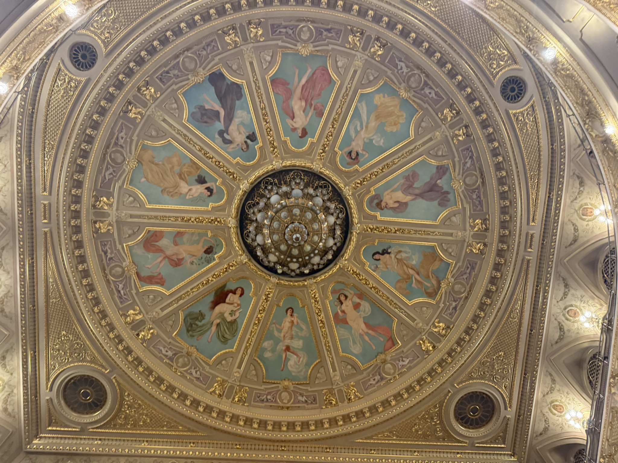 The theatre hall inside was very luxurious as well. In the top right, there's a box seat for the Austrian emperor (notice the crown decoration)! I'm glad they didn't remove it β the box will be most useful once I become the European Emperor.