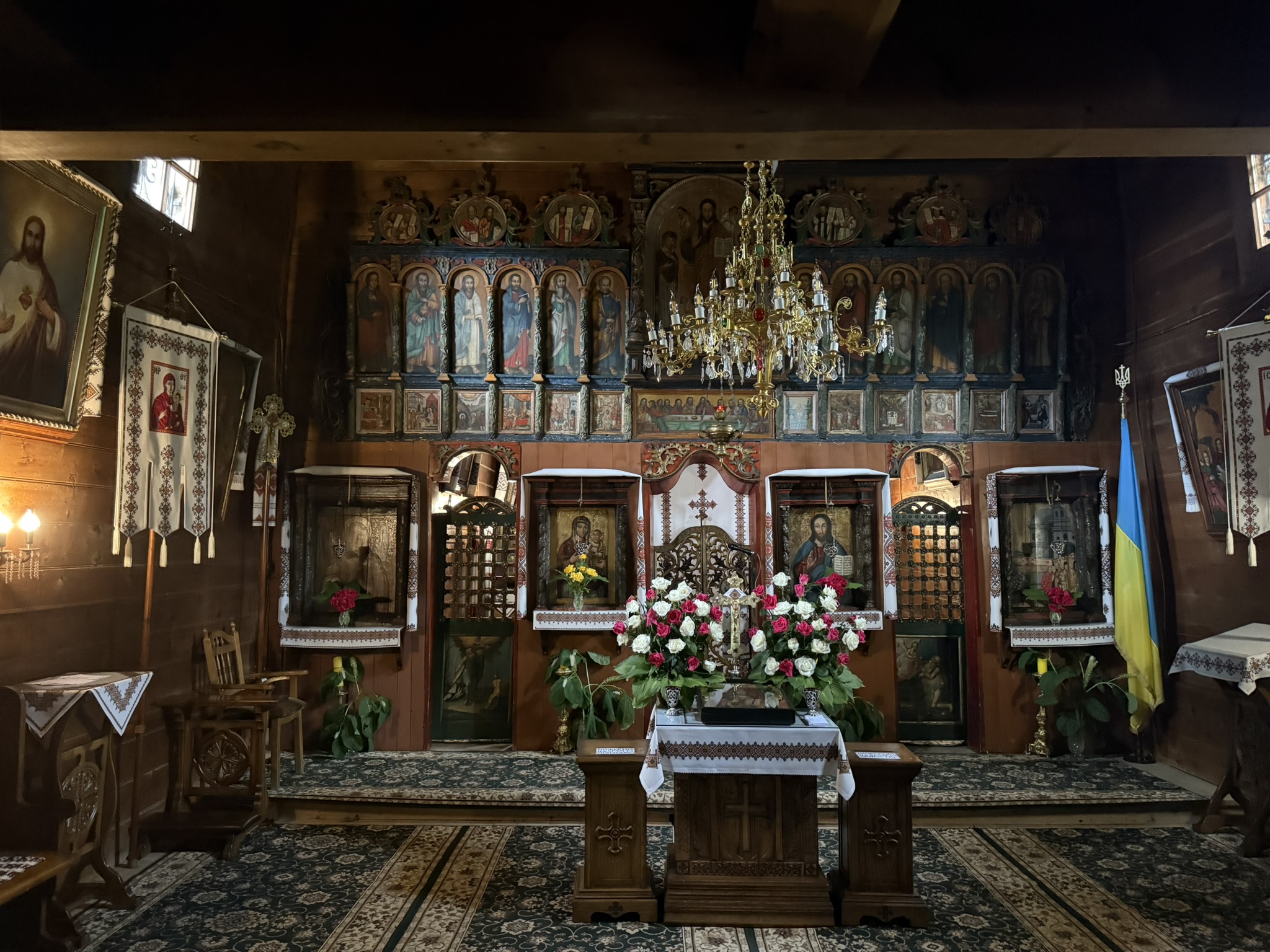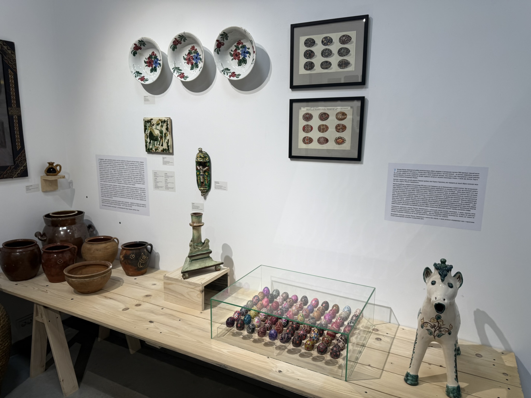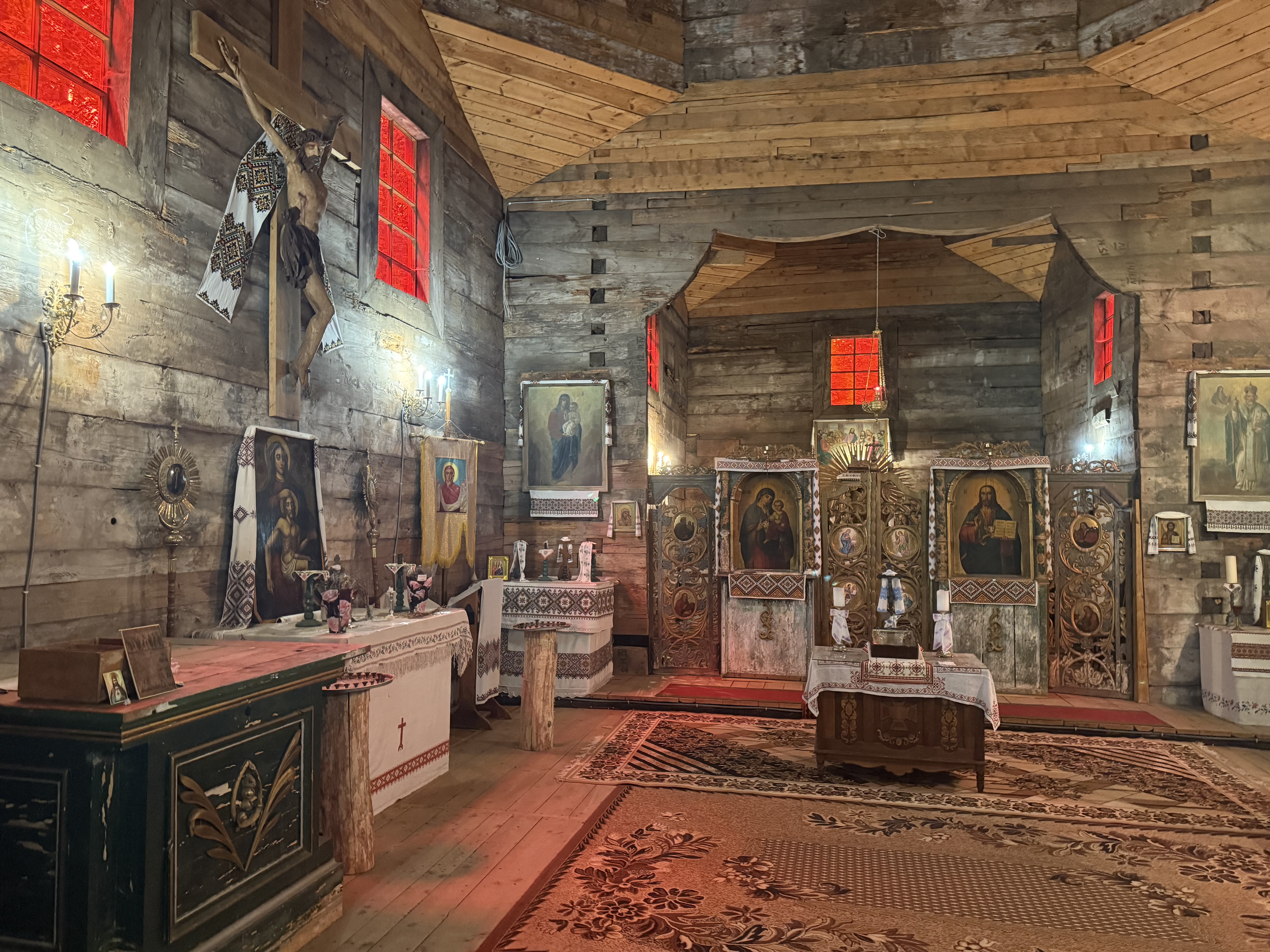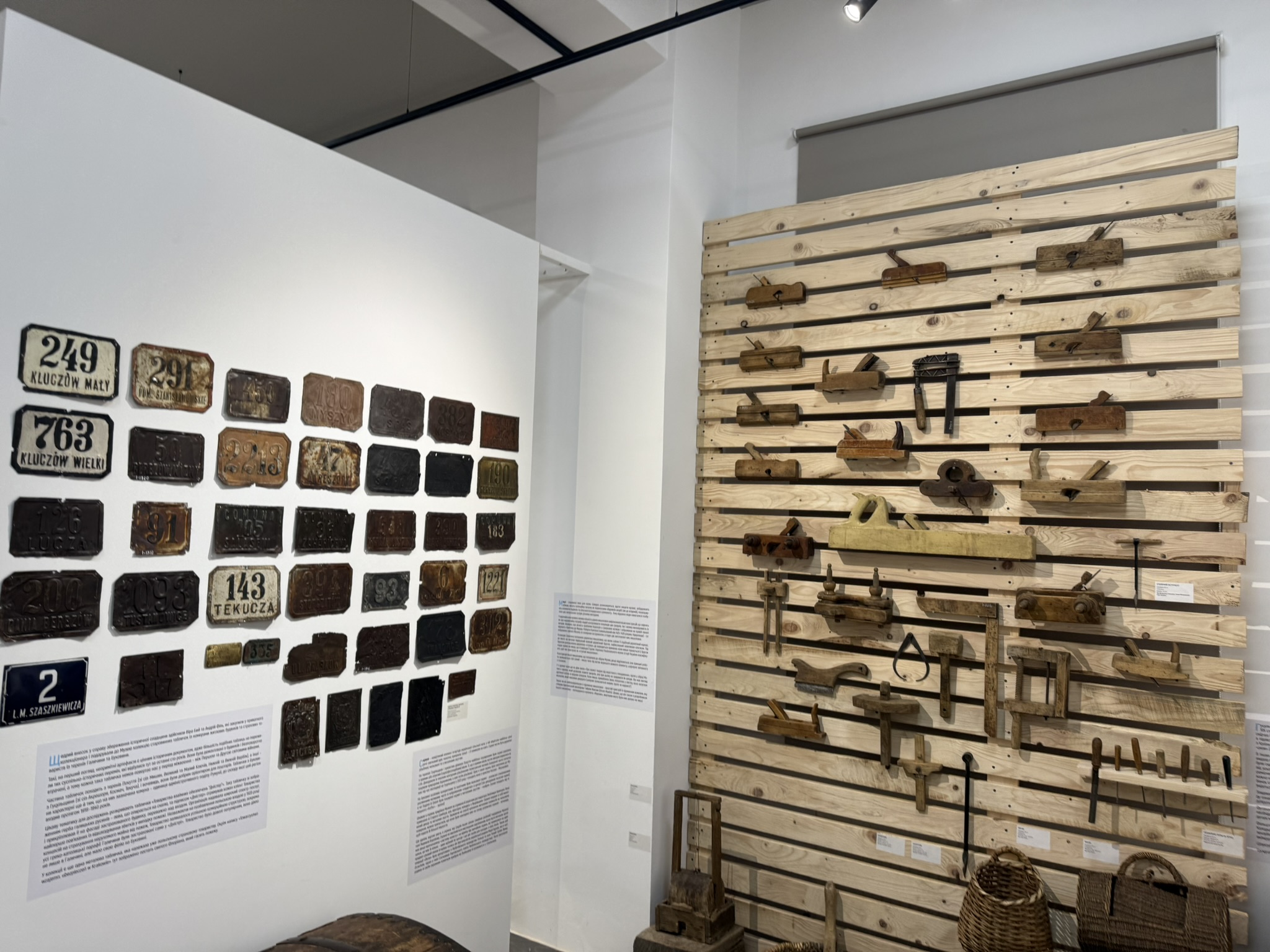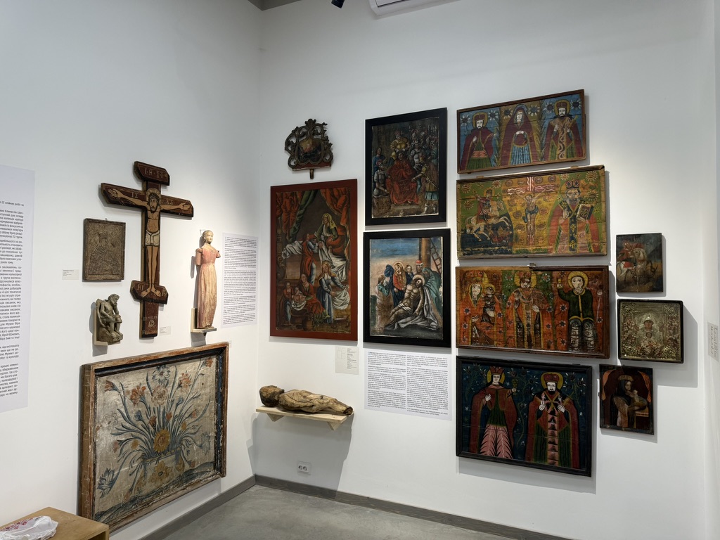 One of the buildings hosted an exposition โ pysanky, old tools, carpets, artistic paintings, pieces of clothing and other old items were on display.