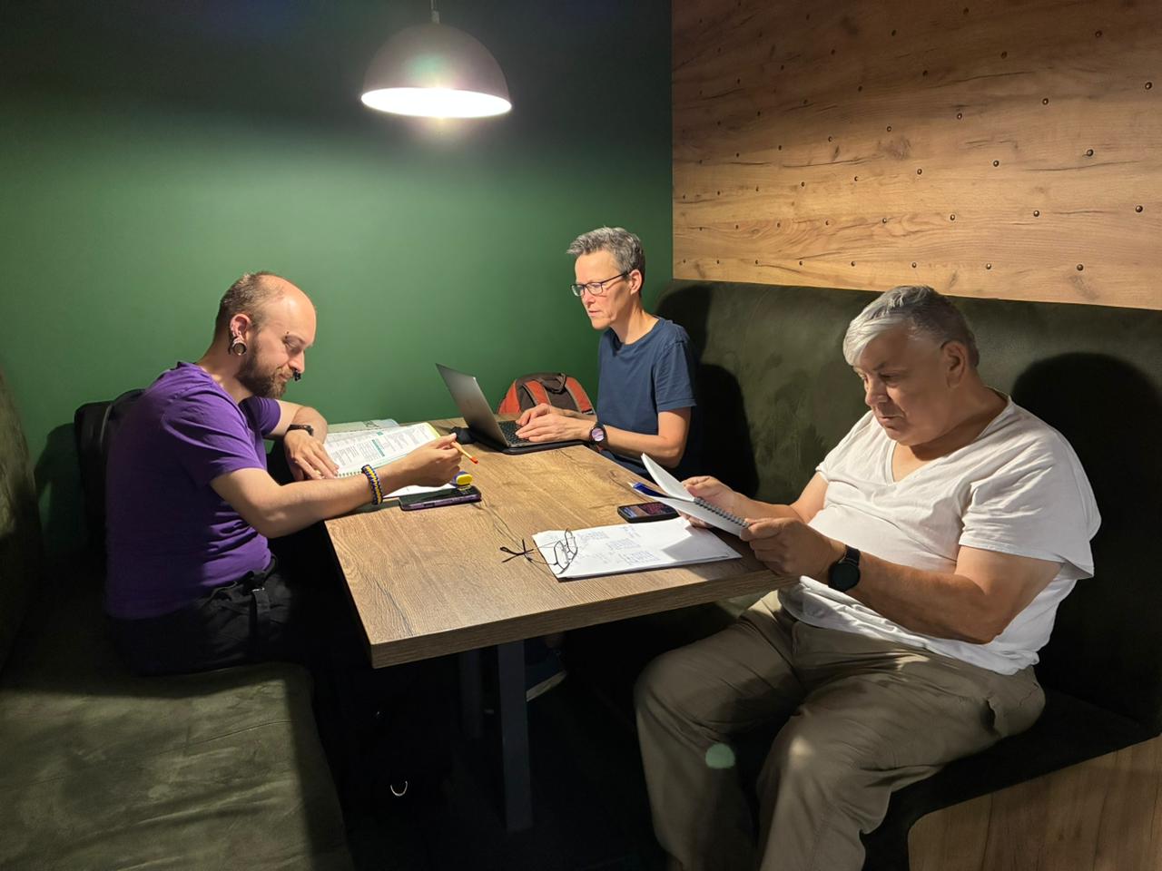 Intercoms make some announcements. My watch and mobile phone start pinging, as do those of those around me. For example, during the interview with Myroslav Marynovych: