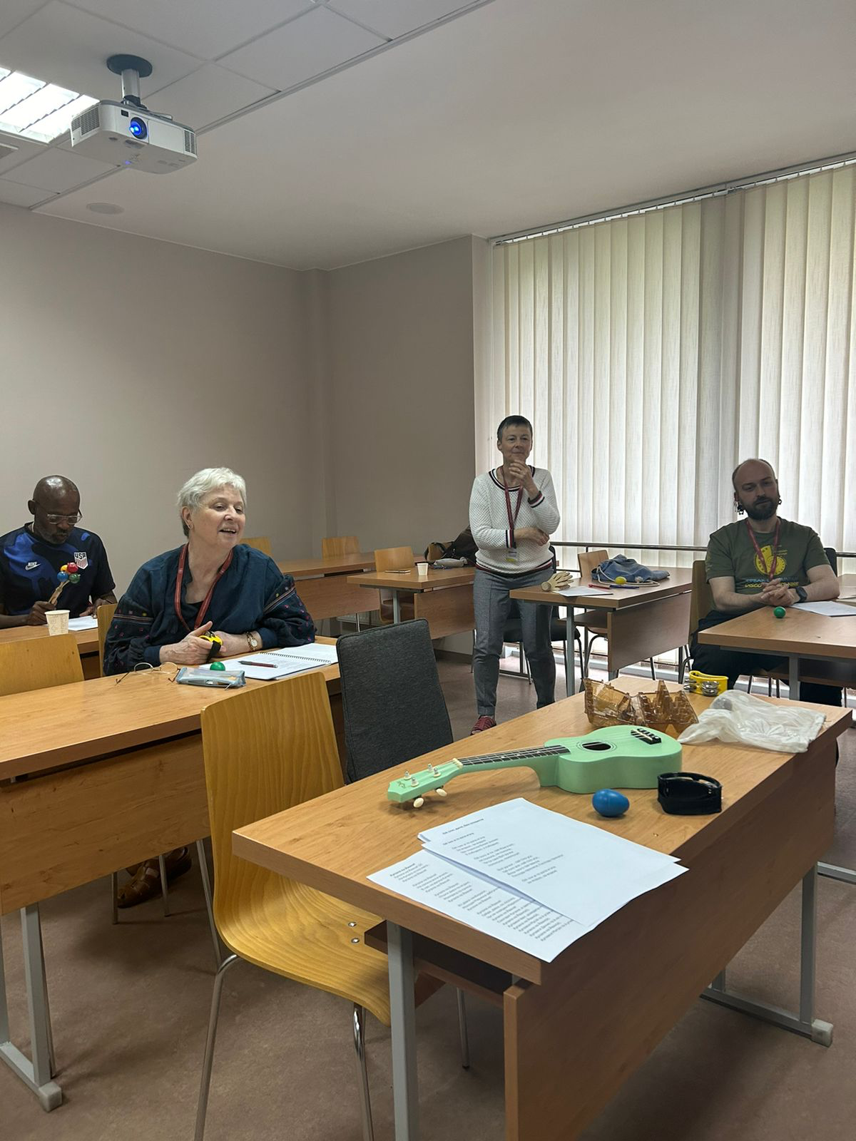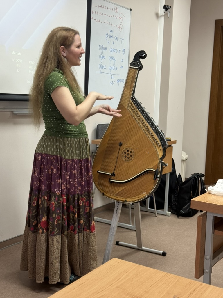The music workshops are led by Mariia Koshelinska-Martyniuk β conductor of the youth choir Divino Amore, co-founder of the Lviv-based acoustic multi-instrumental band Three Steps into the Night, and a music educator. Mariia is passionate about singing and plays a variety of musical instruments, including piano, bandura, guitar, ukulele, and mandolin.